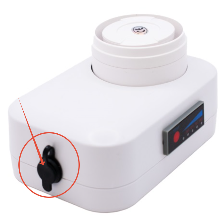 Appuyez sur le bouton noir situé à l’arrière de la sirène et maintenez-le enfoncé.